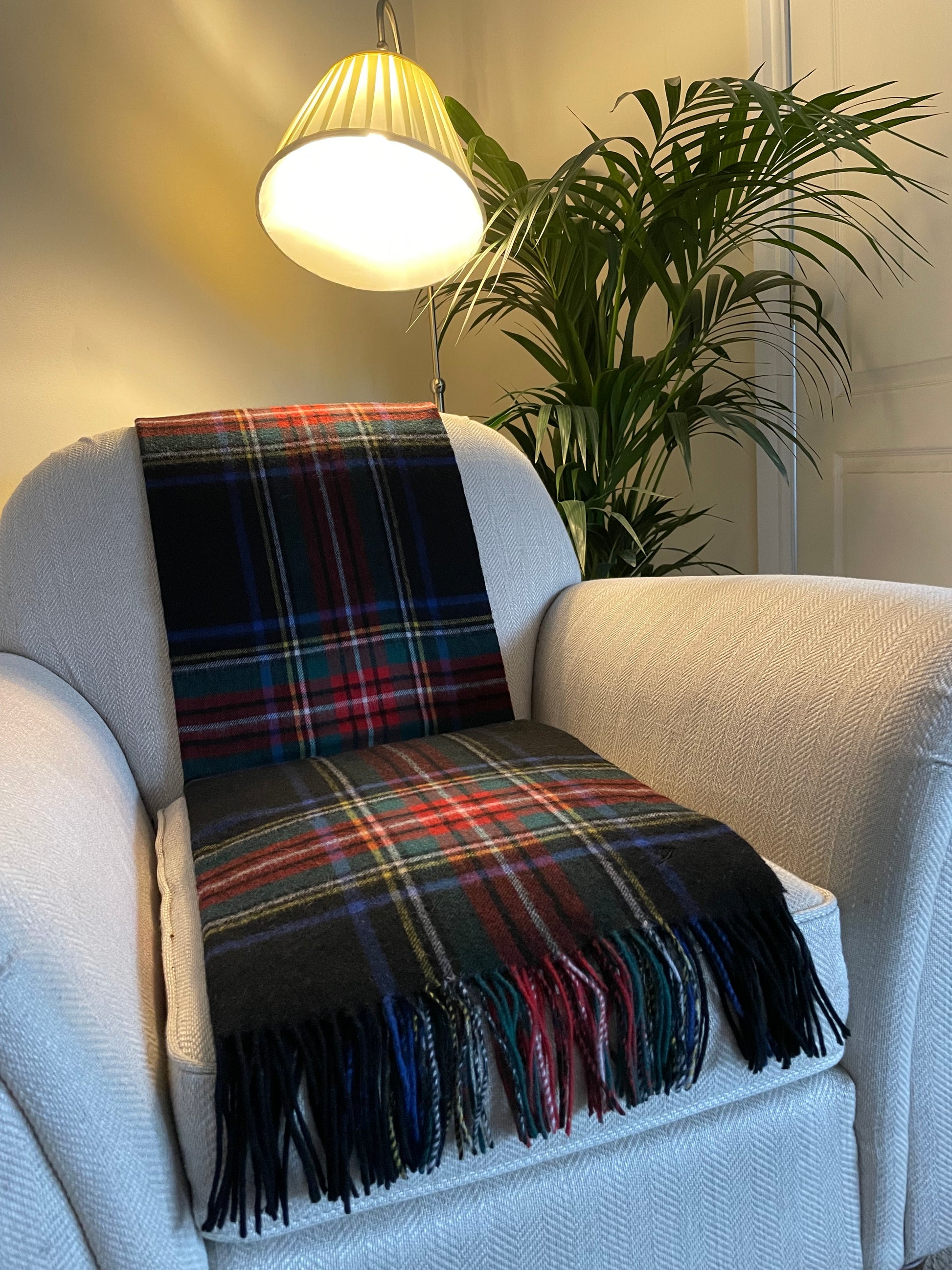 LAMBSWOOL TARTAN THROW - BLACK STEWART