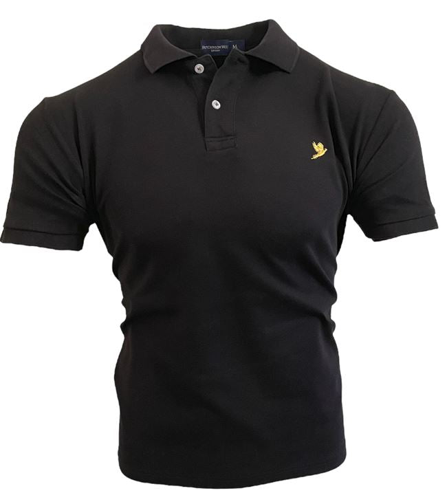 BLACK MEN'S CLASSIC POLO SHIRT WITH GOLD EMBROIDERED PHEASANT INSIGNIA