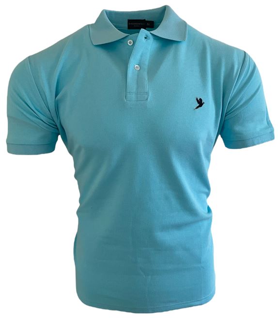LIGHT BLUE MEN'S CLASSIC POLO SHIRT WITH NAVY EMBROIDERED PHEASANT INSIGNIA