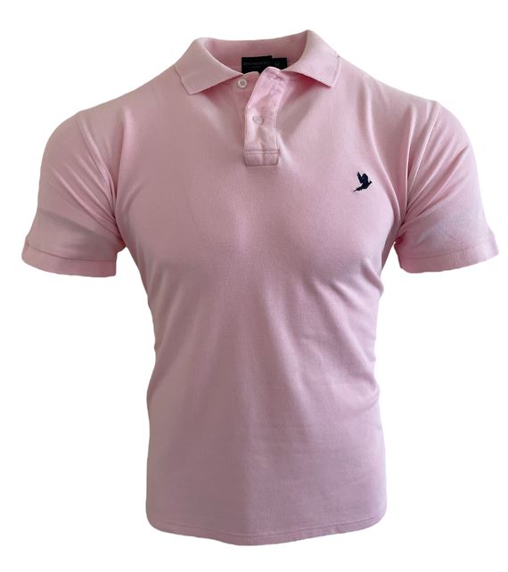 MEN'S CLASSIC POLO SHIRT PINK WITH EMBROIDERED NAVY PHEASANT INSIGNIA
