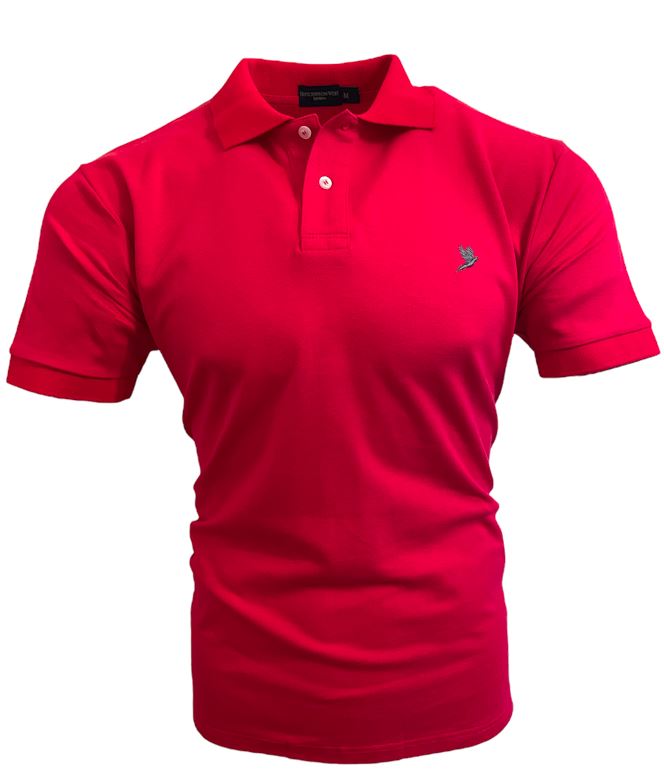 RED MEN'S CLASSIC POLO SHIRT WITH CHARCOAL GREY EMBROIDERED PHEASANT INSIGNIA