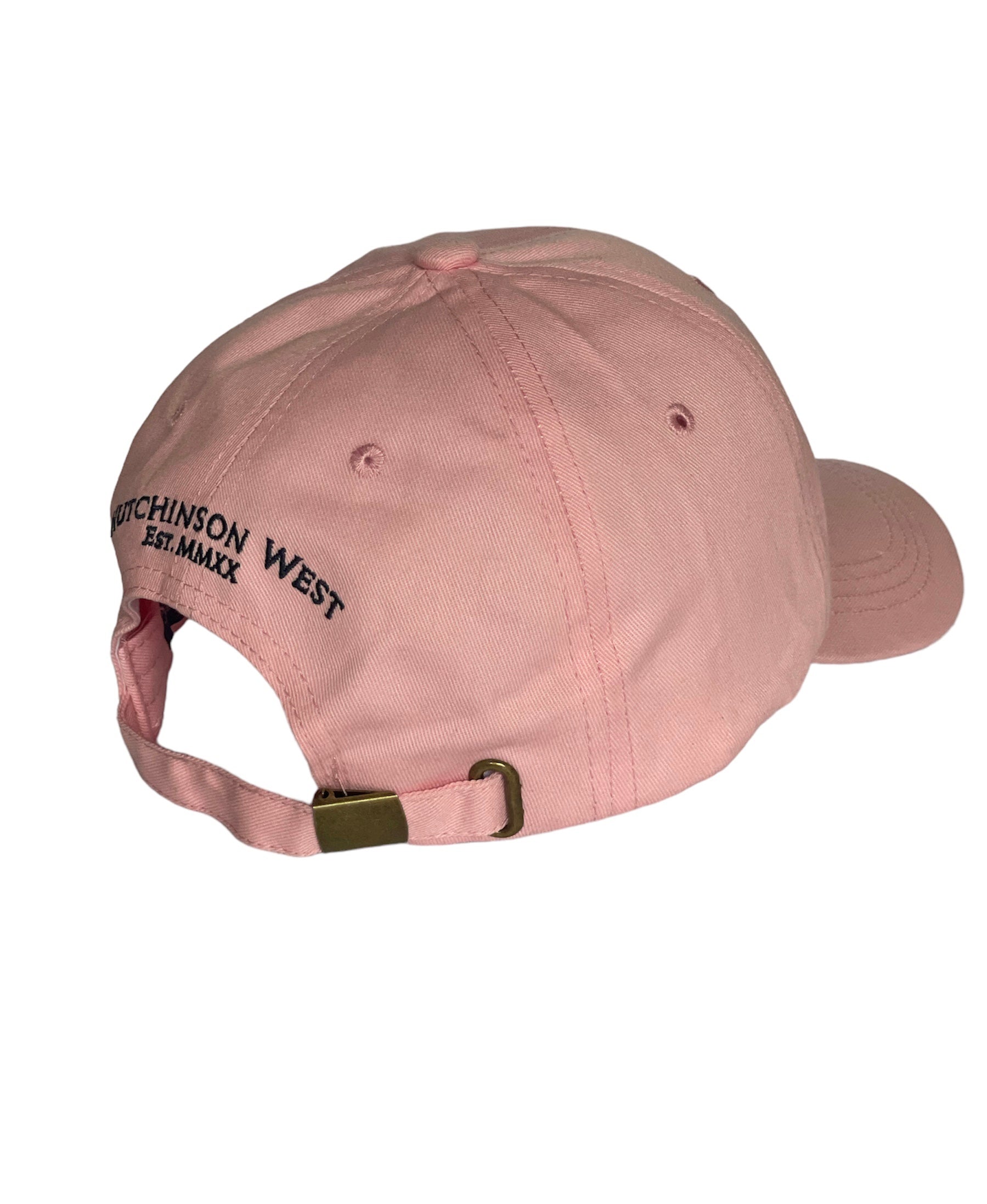 Introducing the Hutchinson West distinguished pink baseball cap, adorned with our Iconic embroidered navy pheasant insignia.