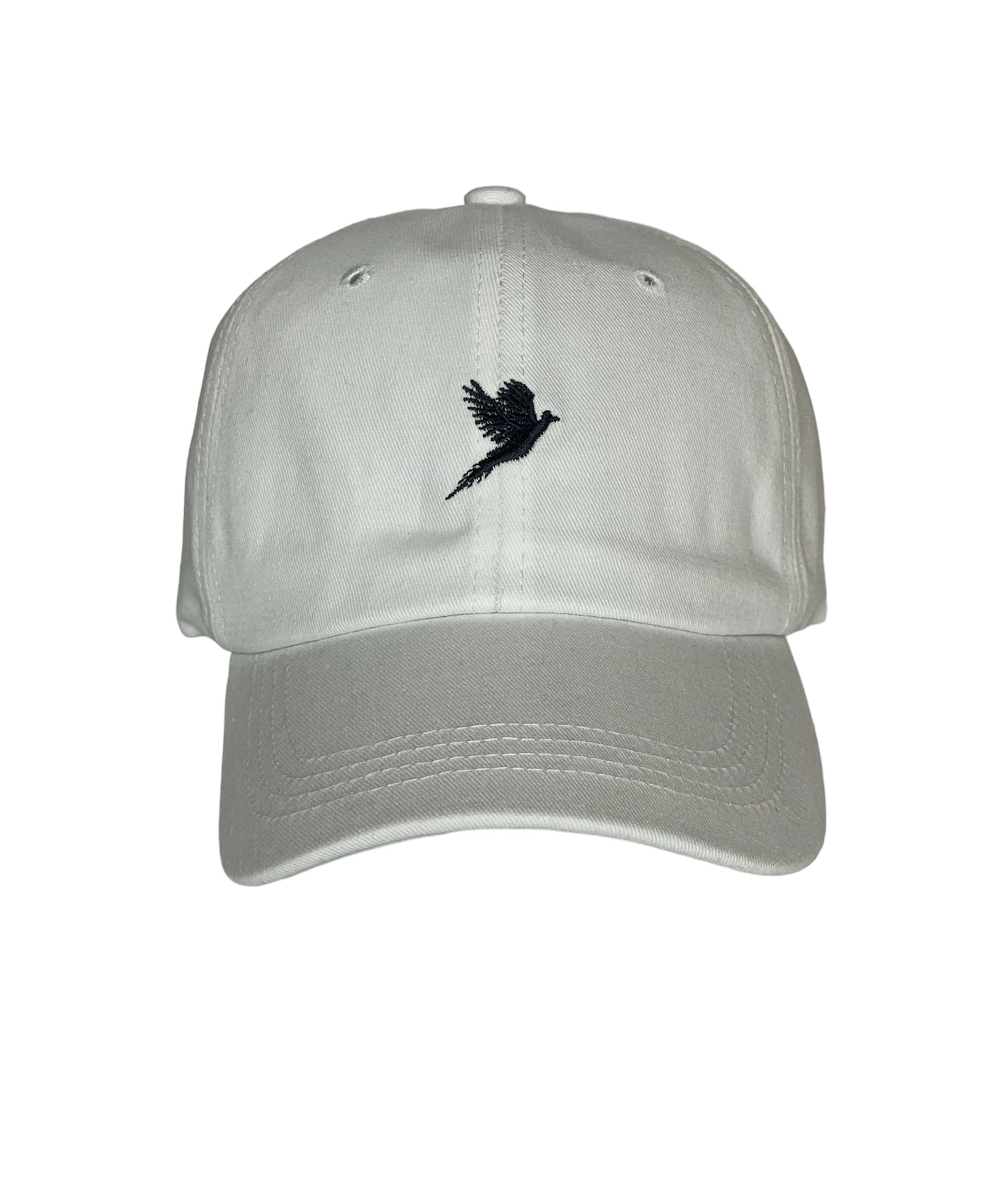 Introducing the distinguished white baseball cap, adorned with our Iconic embroidered navy pheasant insignia.